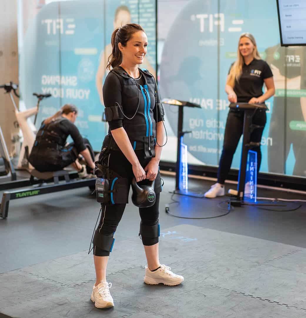 Het E-Move programma van E-Fit is een full-body workout van slechts 20 minuten, op basis van EMS technologie (Elektro Musculaire Stimulatie). Hierdoor sport je maar liefst 18x efficiënter dan bij een 90 minuten durende klassieke workout. Via een speciaal elektrodenpak worden er tijdens het sporten impulsen gestuurd naar 10 verschillende spiergroepen, waardoor je tot wel 48 000 spiercontracties krijgt.